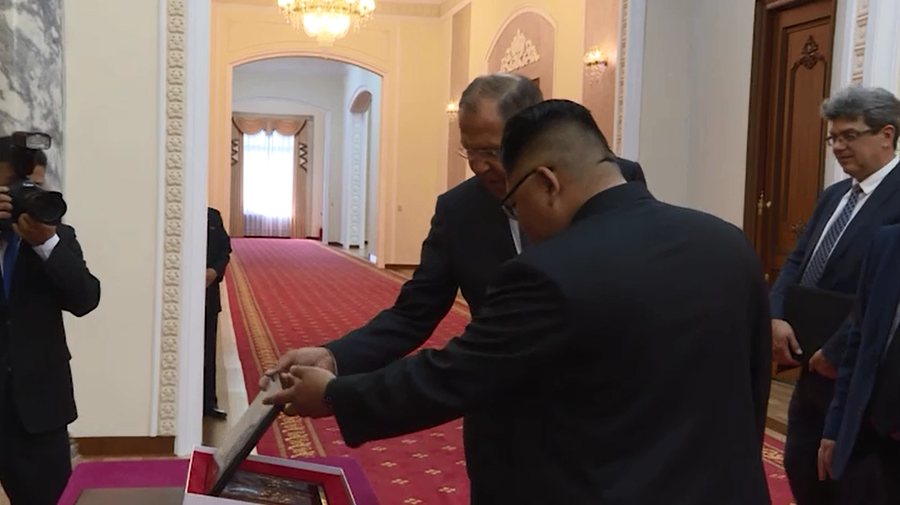 Lors d'une rencontre visiblement riche en perspectives diplomatiques, le ministre des Affaires étrangères russe a transmis à Kim Jong-un «le salut le plus chaleureux» de Vladimir Poutine et «ses souhaits de succès dans les importantes initiatives entreprises sur la péninsule coréenne».